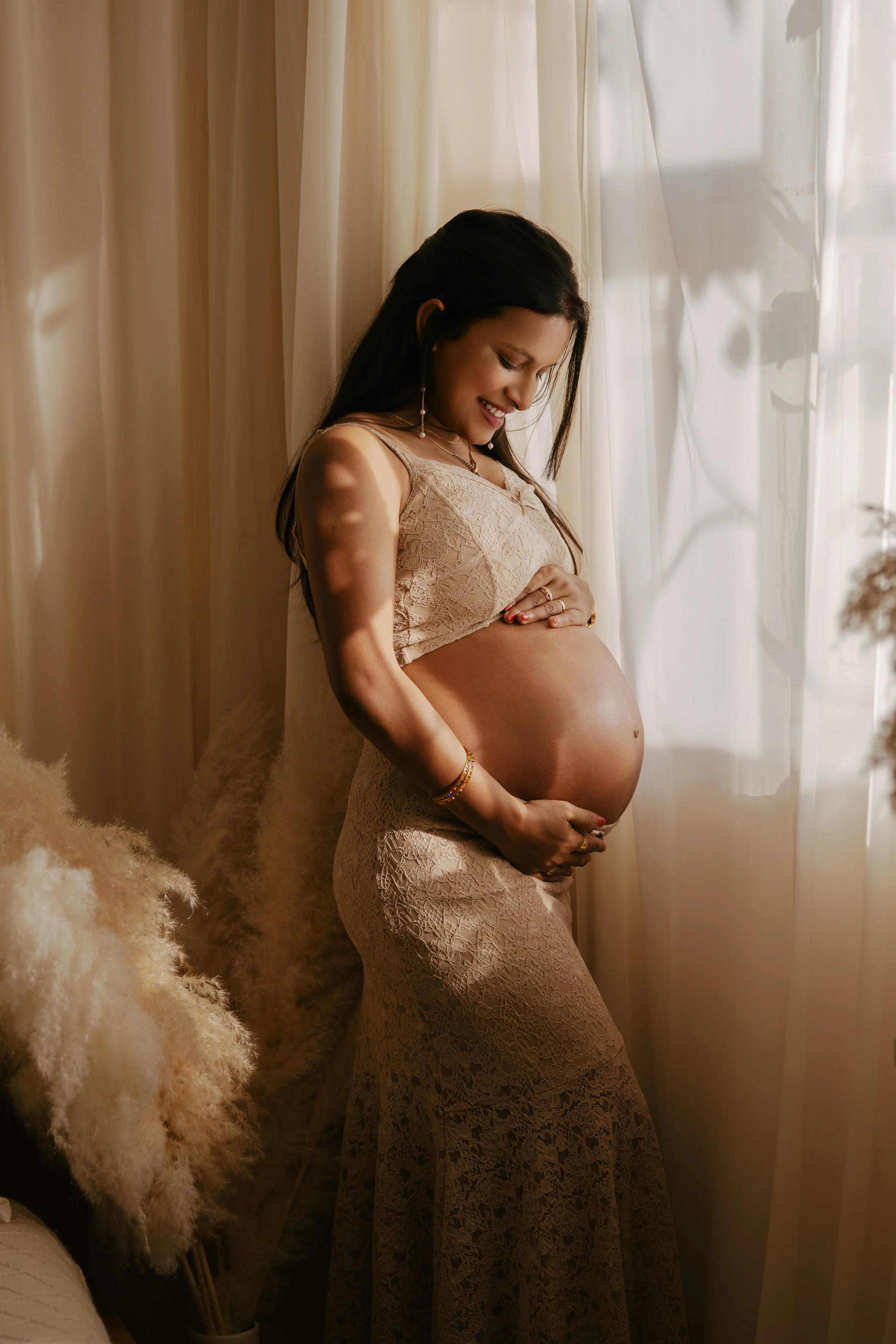 I offer maternity sessions both in my cozy photography studio and outdoors in natural settings. In every case, you, your comfort, and your happiness are my top priorities. I never rush a session - we take as many breaks as you need to ensure you feel relaxed and cared for.